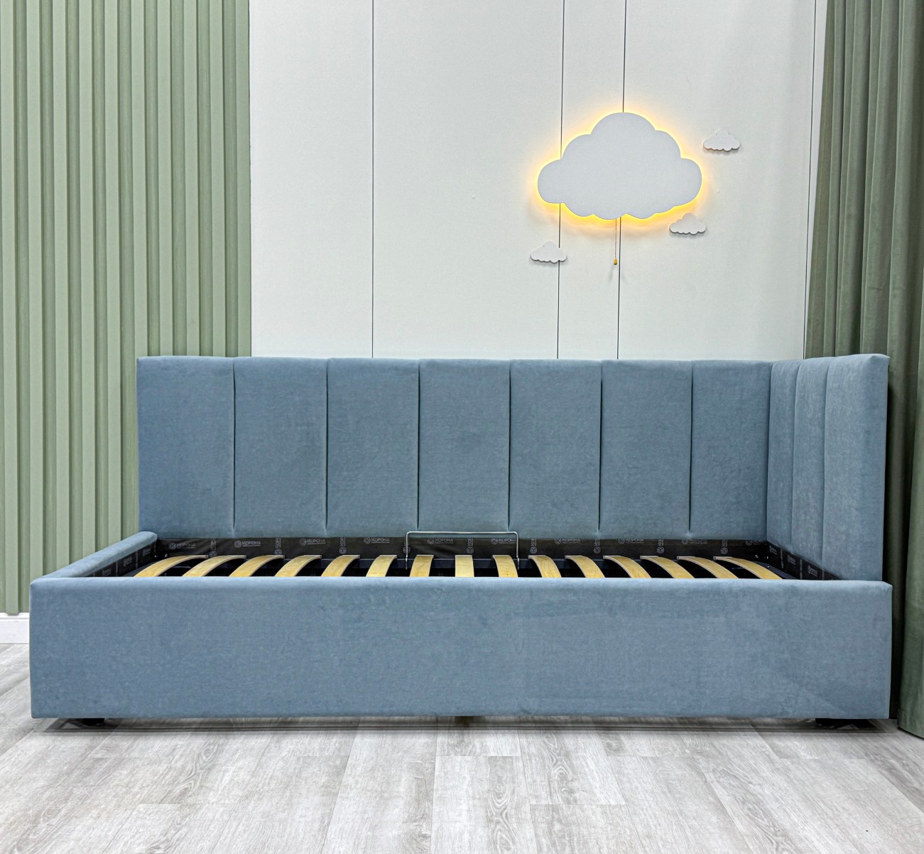 Обратите внимание, что кровать в базовой комплектации идет с логотипированной универсальной спинкой.