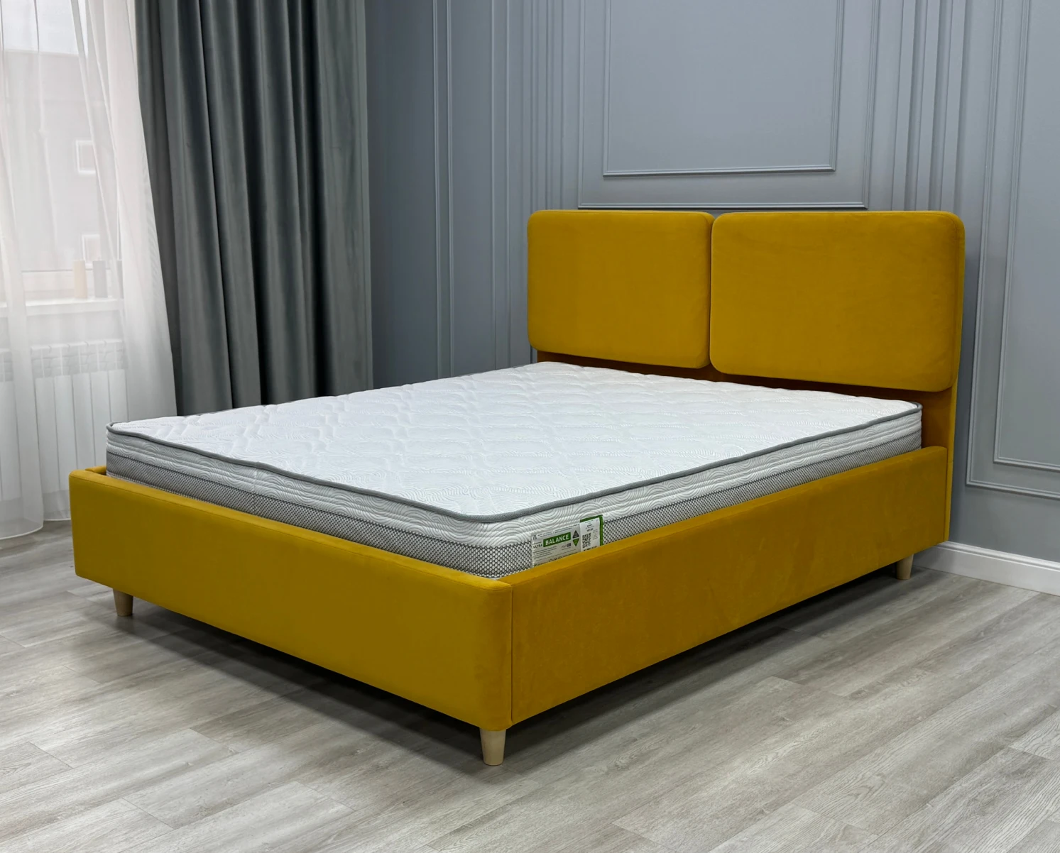 Интерьерная кровать «Selena» – эксклюзивная модель для фирменных салонов в трендовом минималистичном дизайне со съемными подушками и возможностью выбора высоты ножек.
